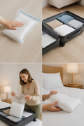 TakeMe Home. This ergonomic pillow is designed for optimal comfort both at home and during travel. Its supportive shape helps maintain proper neck alignment, reducing strain and promoting restful sleep wherever you are. Lightweight and portable, it easily adapts to different settings, providing consistent support for improved relaxation and overall well-being.