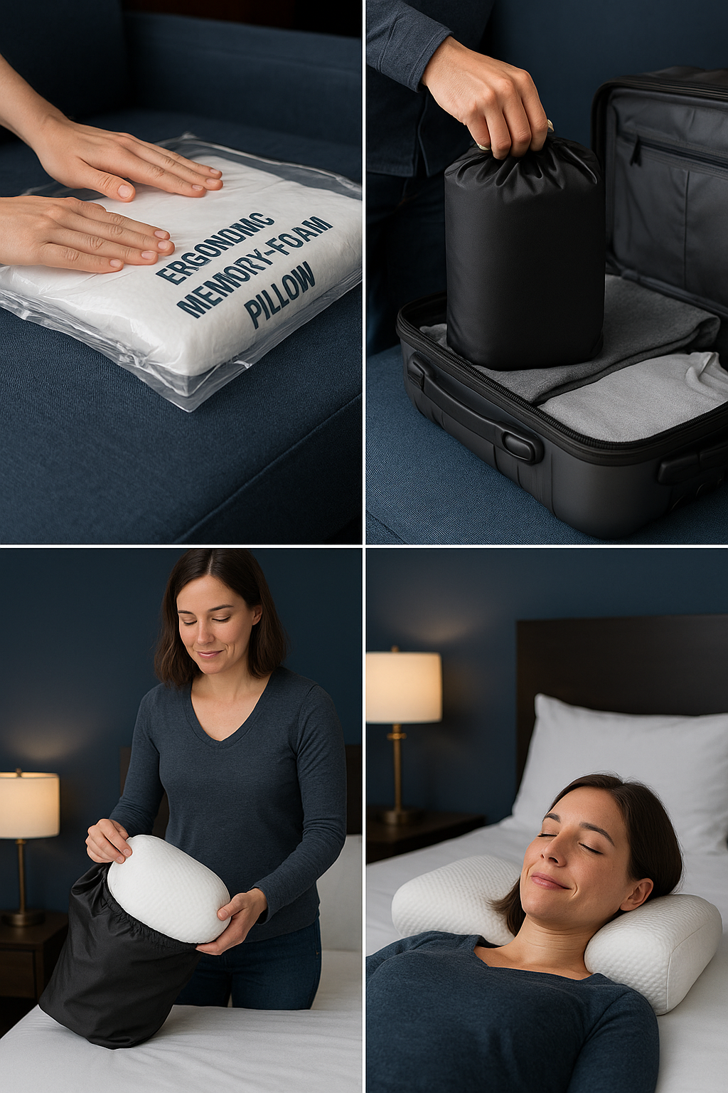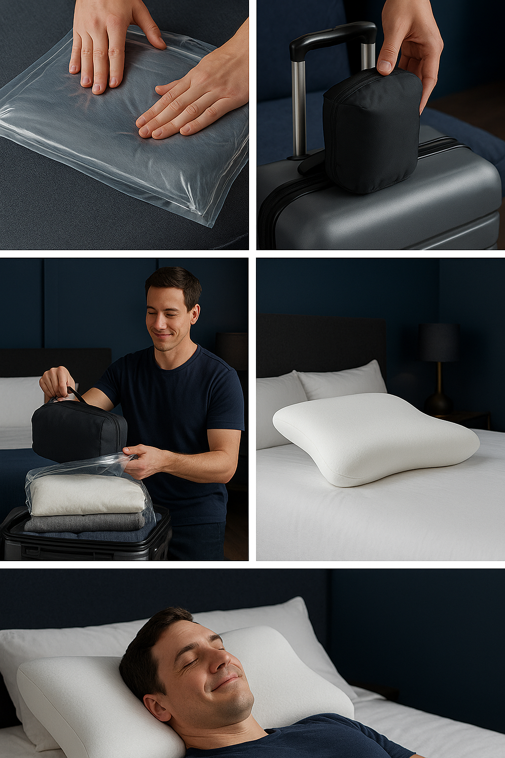 TakeMe to The Moon pillow offers superior ergonomic support while being incredibly easy to handle. Its innovative design allows it to compress by 90% of its original size, making it an ideal travel companion that fits effortlessly into any bag. Experience comfort and convenience wherever you go with the Moon pillow.